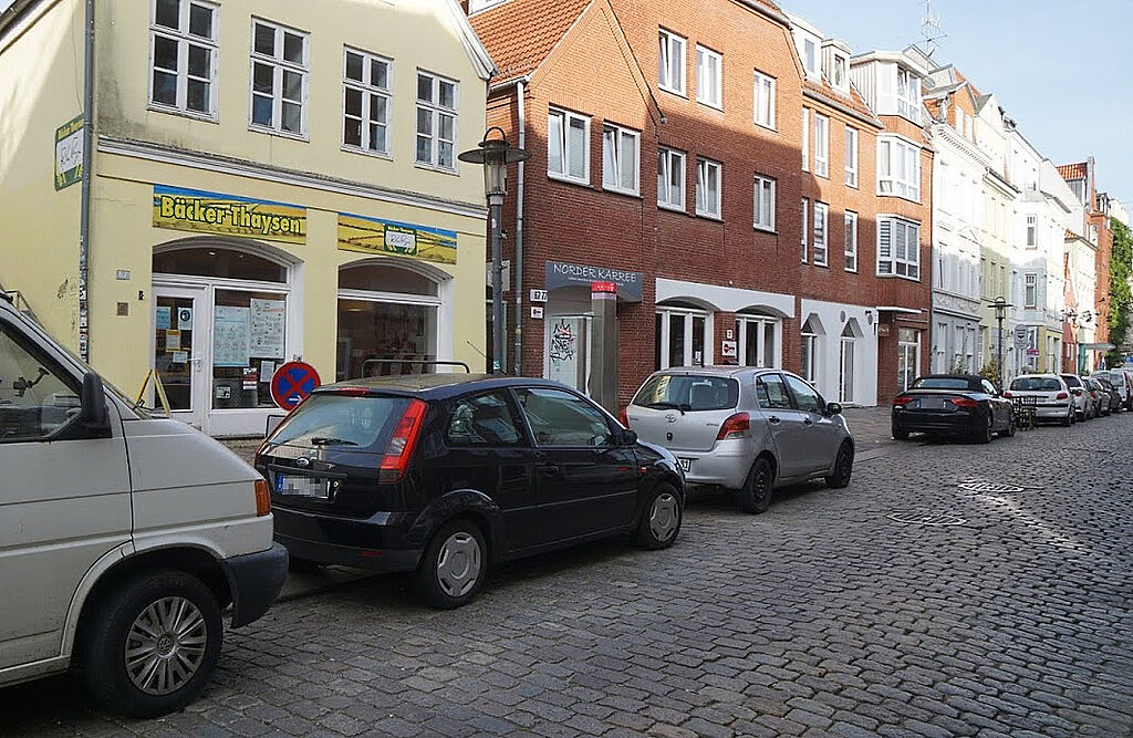 Aufgrund eines Versäumnisses der lokalen Behörden war die Sperrung der Parkplätze nicht rechtzeitig ausgeschildert worden. Womit in der Norderstraße bei einer Verkehrslösung ohne Poller oder konsequente, regelmäßige Kontrollen zu rechnen ist, zeigte diese Panne überdeutlich: Trotz absolutem Halteverbot waren eine ganze Reihe von Parkplätzen belegt - und blieben es leider auch.