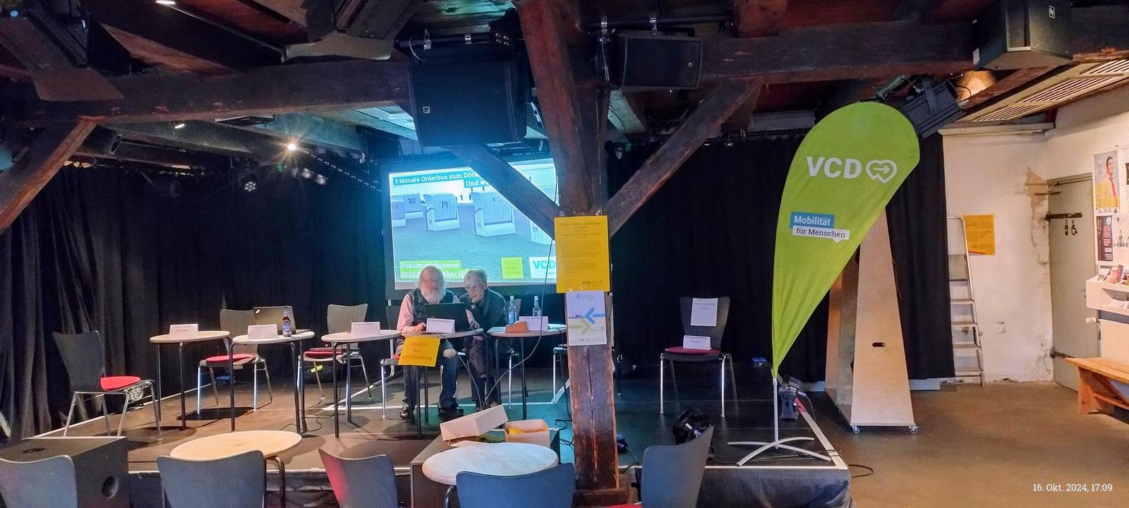 Am 16.10.2024 hatten der VCD Nord und die Initiative Bus zum Dockkoog zu einer Podiumsdiskussion in den Husumer Speicher unter dem Titel „3 Monate OrderBus zum Dockkoog: Und was jetzt?“ eingeladen.