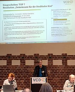 Die Mitgliederversammlung des VCD Nord hat sich am Samstag in Kiel einstimmig für die Gründung eines offenen zivilgesellschaftlichen „Bündnisses für die Stadtbahn Kiel“ ausgesprochen. Ziel sei es, die gesellschaftliche Unterstützung für das Stadtbahnprojekt langfristig zu stärken und zugleich einen konstruktiven Dialog über Zielkonflikte und offene Fragen im weiteren Planungsverlauf zu fördern.
